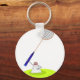 Belle illustration de dessin d'un bloc de badminton tenant une raquette de badminton prête pour un jeu. Image disponible sur divers cadeaux et produits. Clavier. Porte-clés.