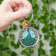 Sur ce collier unique, un magnifique paon bleu et vert se propage sur ses plumes de queue pour le monde entier. L'oiseau est dressé contre un arrière - plan bleu ciel brillant, avec une bordure en mosaïque de vitrail. Coloré! Assurez-vous de voir les produits correspondants dans notre magasin.