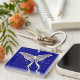 Porte - clé papillon avec arrière - plan bleu foncé.