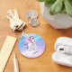 Un porte - clé avec l'image d'une licorne avec de grands yeux bleus, des ailes roses et une crinière arc-en-ciel et queue. Kawaii mignon.