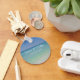 Ce magnifique porte - clé de mariage de plage présente une photo sereine de l'horizon océanique pour un mariage de destination sur la côte pendant l'été. Offrez à vos invités cette agréable réception tropicale grâce à cette jolie photographie lors d'un après-midi balnéaire sur votre île préférée. Complété par un script blanc chic pour un look côtier haut de gamme.