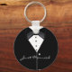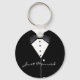 Un tuxedo noir avec une cravate noire et une chemise blanche. Il dit "juste marié" que ce dicton peut être changé si on le souhaite.