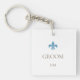 Bleu français classique fleur de lis du marié, monogramme d'initiales personnalisées, porte-clés. L'ajout parfait à un sac-cadeau de marié. Conçu pour correspondre à notre collection de mariage Regency Bleu Français Fleur de Lis.
