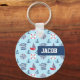 Un porte - clé mignon avec divers objets nautiques comme voilier avec une étoile minuscule, ancre, bouée, boussole, un tee à rayures bleu et blanc. La palette colorée de rouge, blanc, bleu avec un bleu clair pour l'arrière - plan. Idéal pour les garçons qui aiment les thèmes maritimes ou nautiques. Personnalisez avec le nom de l'enfant.