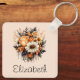 Une porte - clé avec un bouquet de fleurs élégant mais gothique. Composé de tulipes oranges, marguerites jaunes, feuilles et sprigs gris et quelques accents de baies oranges.