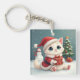 Porte-clés Bouton blanc de chat de Noël
