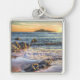 English Scenes Une belle photo de Burgh Island, prise de Bantham Beach au coucher du soleil. La lumière solaire jaune doré profond se reflète sur les roches humides et les sommets des vagues, insufflant de la chaleur à toute la scène. code image : hrcol153