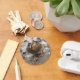 Ce porte - clé impressionnant a une photo d'un beau canard brun avec un bec orange vif. Le canard est debout sur un mur surplombant un lac et semble être profondément pensé.