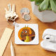 Porte - clé avec illustration de la tête d'un petit dragon orange mignon en cercle orange, imaginaire mignon / conte de fées design pour enfants par Maxi Harmony,