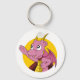 Porte - clé avec illustration de la tête d'un mignon petit dragon volant rose, en cercle jaune, imaginaire mignon / Conte de fées design pour enfants par Maxi Harmony