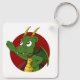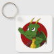 Porte - clé avec illustration de la tête d'un petit dragon volant vert mignon, en cercle rouge, imaginaire mignon / Conte de fées design pour enfants par Maxi Harmony