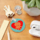 Un mignon poulpe orange sur un coeur rouge. Arrière - plan bleu. Bébé porte - clés d'animaux. Idée cadeau pour les enfants.