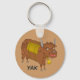 Un yak gai avec une lourde charge. C'est une image de dessin animé d'un Yak brun, laineux, il a un sac attaché à son sac avec une corde jaune. Il sourit heureux.