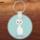 Porte-clés Caricature mignon blanc Kitten sur bleu clair