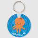 Un mignon poulpe orange. Bébé porte - clés d'animaux. Modifiez le nom pour customiser. Version motif vague bleue. Idée cadeau pour les enfants.