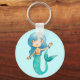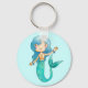Une sirène joyeuse avec une délicate queue verte de mer et de beaux cheveux bleus. Elle porte une paire de bracelets perles et un dessus jaune tout en agitant joyeusement.