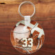 Porte - clé sportif avec graphisme de football composite avec casque, footballs, poteau de but et gridiron et de football apparence en cuir - nom personnalisable et numéro de maillot - par katz_d_zynes