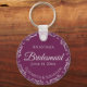 Ces beaux porte - clés de demoiselles d'honneur sont conçus pour être donnés comme un cadeau ou une faveur de mariage. Le design est simple mais élégant et présente une frileuse bordure en faux feuille gris argenté avec du texte gris pâle sur un arrière - plan couleur cassis violet, magenta ou baies. Il y a de la place pour son nom, la date du mariage et le nom du couple. Bonne façon de la remercier d'avoir fait partie de votre journée spéciale!