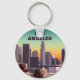 Illustration vectorielle colorée avec une vue magnifique dominée par des gratte-ciel et des palmiers du centre de Los Angeles avec un beau coucher de soleil californien en arrière - plan.