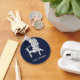 Créez votre propre souvenir ou un petit cadeau personnalisé. Ce porte - clé présente l'illustration d'une chaise Adirondack en bois blanc coquille d'oeuf contre un arrière - plan bleu marine. Votre texte s'affiche en lettres blanches correspondant sous le graphique.