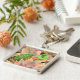 Le porte - clé présente la photo d'un petit caméléon niché parmi des plantes tropicaux et le texte, "Ne nous perdez pas". Le texte est personnalisable.