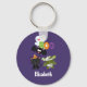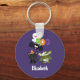 Un porte - clé personnalisé avec une chauve-souris volante noire, une chauve-souris verte portant des bandages blancs et un mignon chat noir avec un casquette sorcier orange. Boo écrit en lettres colorées amusantes avec un heureux fantôme flottant derrière lui.
