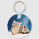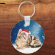 Porte-clés Chat mignon portant chapeau de Noël rouge neige