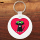 Porte-clés Chat noir dans un cœur rouge