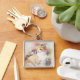 Plutôt Vintage Chat Grand Carré haut de gamme Porte - clé Pleine couleur, fond de sang Impression Argent Coloured Metal Charm & Ring UV Résistant et étanche Ajouter Photos, oeuvres d'art et texte Pas de commande minimum