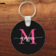 Porte-clés Chaud rose noir moderne Script Girl Monogramme Nom