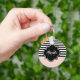 Porte-clés Chic rose et noir larges bandes Nom et monogramme