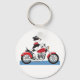 Un chien à la recherche de cool qui monte sur une moto. Cette conception semble vraiment efficace sur ce Porte - clé