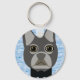 Porte-clés Chien-taureau français gris, aquarelle bleu