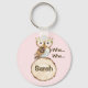Chouette de la Couronne florale et tranche de bois Clé personnalisée Bague à clé à thème de la chouette de la fille douce avec une chouette aquarelle portant une couronne florale et une tranche de bois. Idéal pour un cadeau personnalisé.