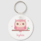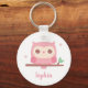 Un porte - clé avec l'illustration d'une jolie petite chouette rose est perché sur une branche. Personnalisez avec le nom de la fille.
