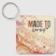 Porte - clé représente un arrière - plan abstrait d'aquarelle avec de vieilles feuilles de musique vintages. Il présente une citation chrétienne inspirante, "Fabriqué pour le culte".
