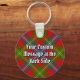 Clan Forrester écusson badge entouré d'une sangle et boucle sur l'arrière - plan tartan. Texte personnalisé des deux côtés.