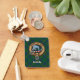 Clan Kennedy crête badge entouré d'une sangle et boucle sur l'arrière - plan tartan. Texte personnalisé des deux côtés.
