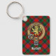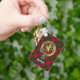 Clan MacDuff badge crête entouré d'une sangle et boucle sur l'arrière - plan tartan. Texte personnalisé des deux côtés.