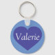 Ce porte - clé présente un coeur bleu sur un arrière - plan bleu foncé superposé par du texte personnalisable. Remplacez "Valerie" par le texte que vous choisissez.