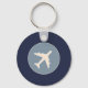 Un article élégant avec l'image graphique d'un avion blanc dans un cercle, sur un arrière - plan bleu marine (couleur personnalisée) personnalisé avec vos initiales... pour identifier vos clés