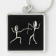 La conception des clôtures montre deux experts en dueling avec des epees et des masques - démontrant la poussée et les positions de parry. Graphique cool pour les amateurs de clôtures.