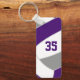 Ce porte - clé à thème de volley-ball présente l'image abstraite surdimensionnée d'un volley-ball violet, gris et blanc sur le devant, sur lequel vous pouvez customiser le numéro de maillot de l'athlète - au verso, le nom de l'athlète surplombe un volley-ball blanc de base tout aussi surdimensionné - par katz_d_zynes
