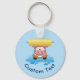 Un porte-clés en forme de cochon heureux lavant une voiture avec une brosse à rouleau et des éclaboussures d'eau. Couleur de fond personnalisable. Texte personnalisé sur les deux côtés.