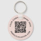 Porte - clés roses et ronds avec votre code QR et votre texte personnalisé. Modifiez les polices et les couleurs, déplacez et redimensionnez les éléments à l'aide de l'outil de conception. IMPORTANT ! VOUS DEVEZ REMPLACER LE MODÈLE DE CODE QR PAR VOTRE PROPRE CODE QR !