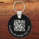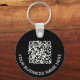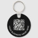Porte - clé publicitaire noir moderne pour votre entreprise ou organisation, Ajoutez votre code ou logo QR et deux lignes de texte customisé, comme votre nom d'entreprise, slogan, merci, etc, dans une simple typographie blanche.