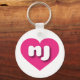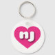 Ce porte - clé est doté d'un coeur rose chaud, plein de formes et de vitalité, qui contient les lettres coques inférieures nj, aux formes arrondies et blanches, une version ludique de l'abréviation pour l'état du New Jersey.