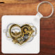 Coeur steampunk mécanique, volumétrique, avec manomètre, acier et or sur arrière - plan blanc. Style Steampunk.