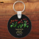 Verset de la Bible « Considérez les lis des champs, comment ils poussent ; » Porte-clés avec dessin à la main sur fond noir. Personnalisez avec votre nom et la couleur de fond en utilisant l'outil « Modifier le design ». Profitez-en !