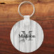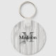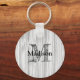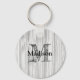 Personnalisez l'accessoire de clé monogrammée avec votre initiale et votre nom personnalisés. Photo de bois de bambou à l'élégante texture gris noir et blanc.